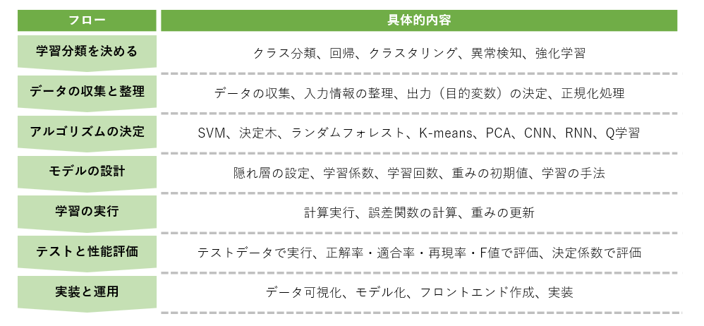 以上が機械学習の基本的なプロセスです。各ステップを丁寧に行うことで、精度の高い機械学習モデルを構築することができます。