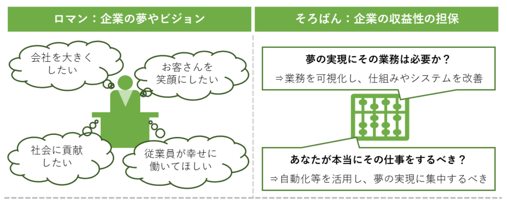 業務改革は「ロマン」と「そろばん」を実現するために行います。