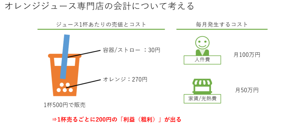 オレンジジュース屋さんの例を用いて、財務諸表の基本を理解します。