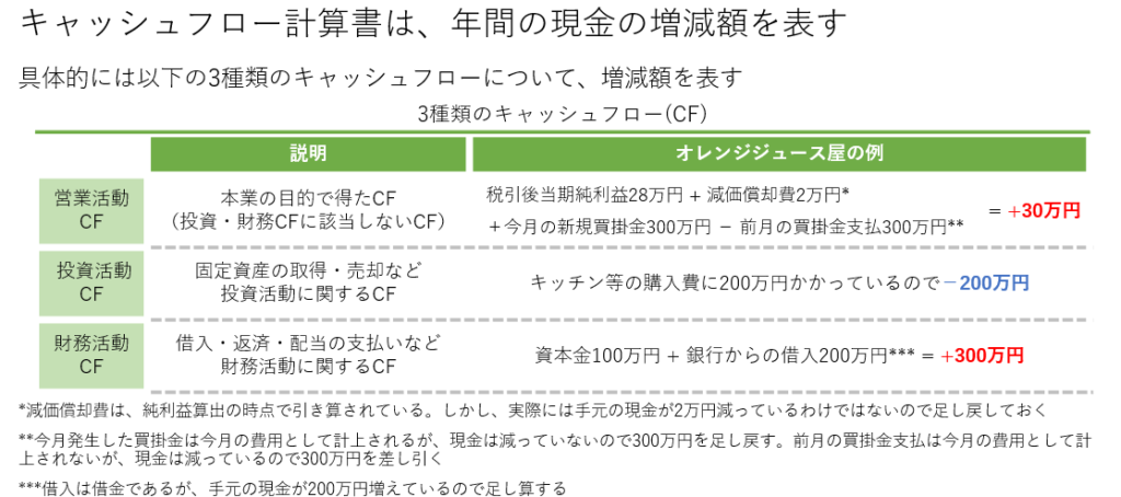 キャッシュフロー計算書は、企業の現金の流れを表します。